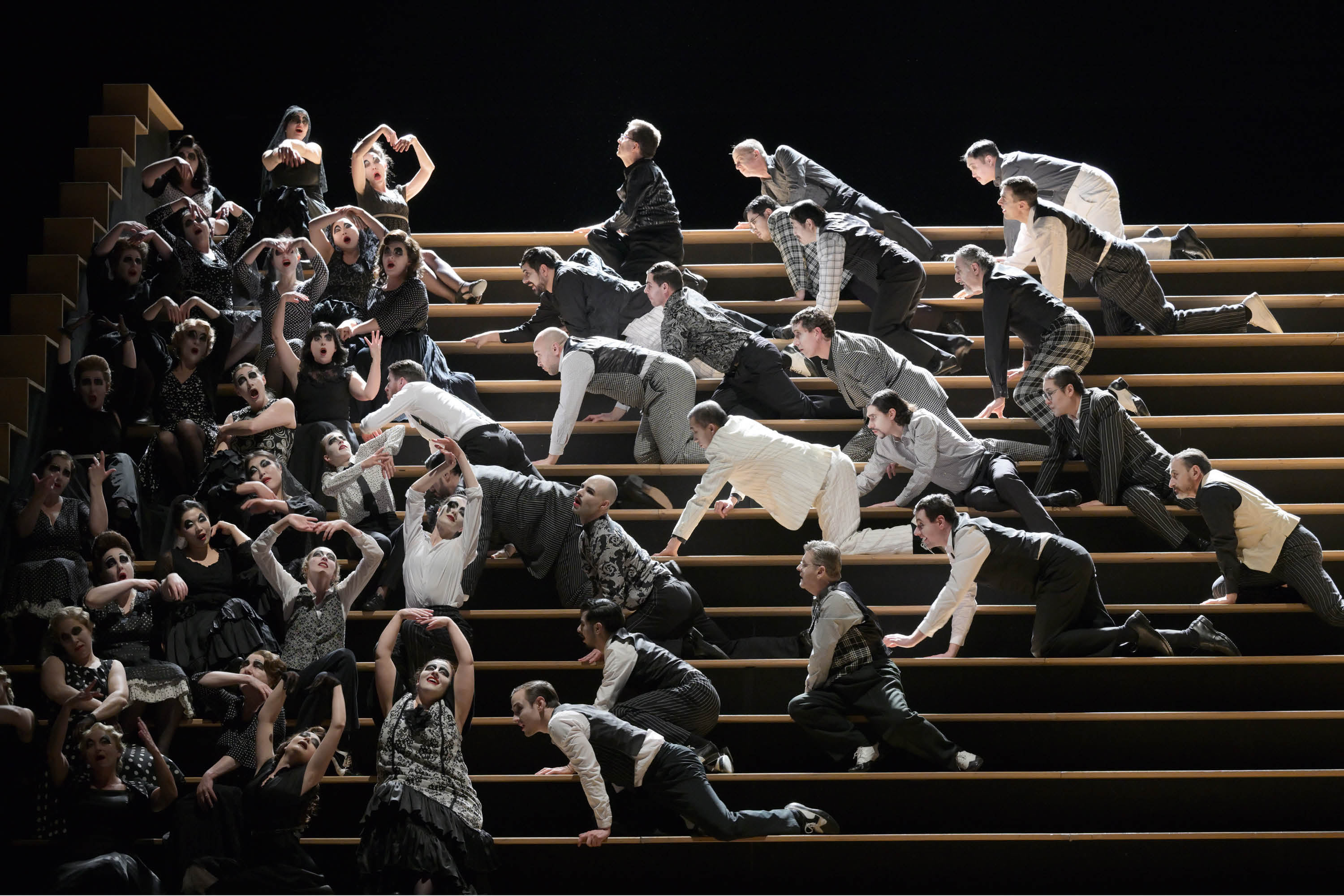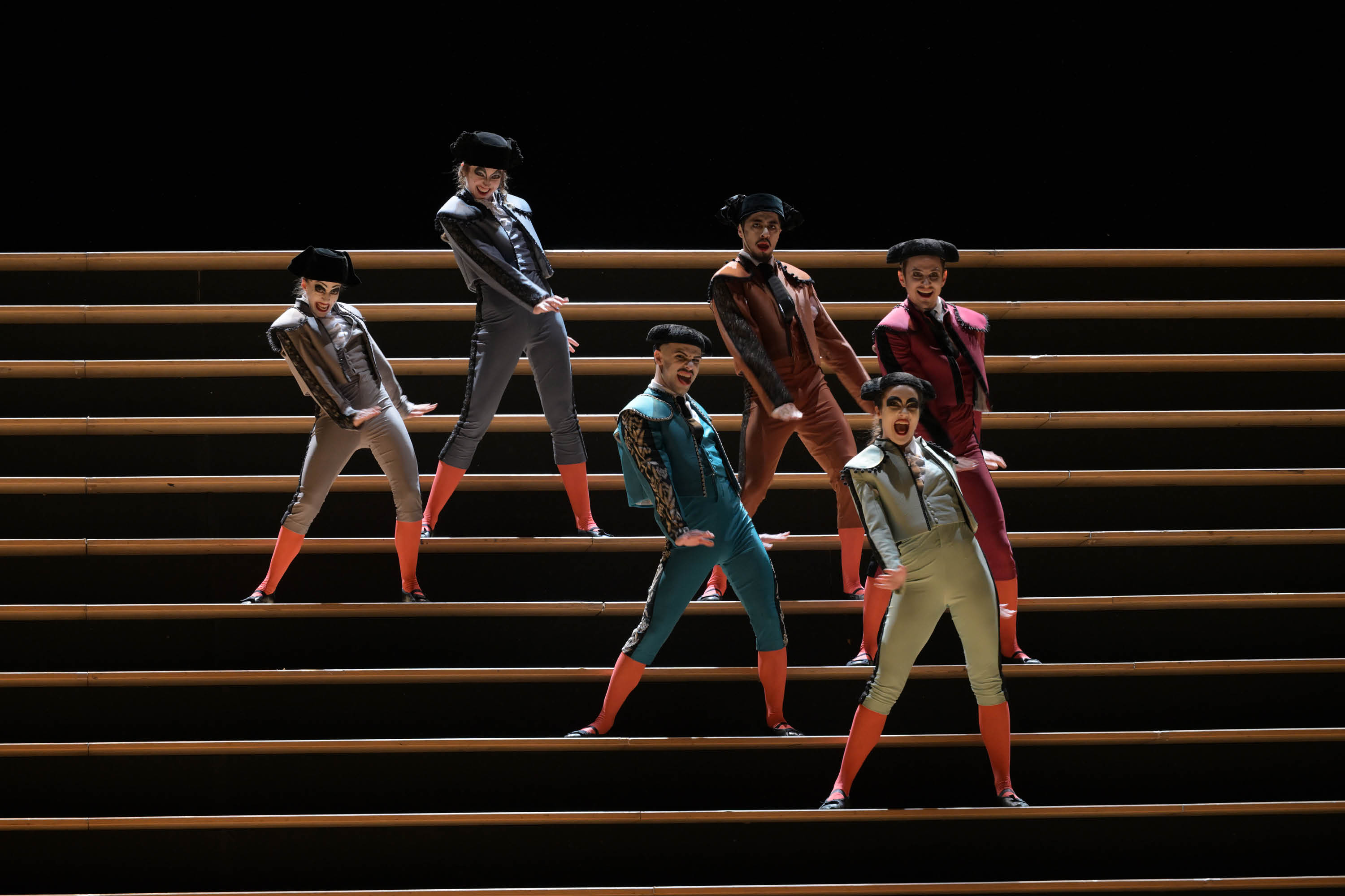 Bizets Musik und die Interpretation von Barrie Kosky führen Extreme zueinander. Varietéhafte Leichtigkeit und Ekstase treffen auf unbewegliche, erstarrte Muster bei den Rollenporträts von Don José und Micaëla. Die Fallhöhe ist groß: Sie führt vom doppelbödigen Operettenton bis hin zur Tragödie.