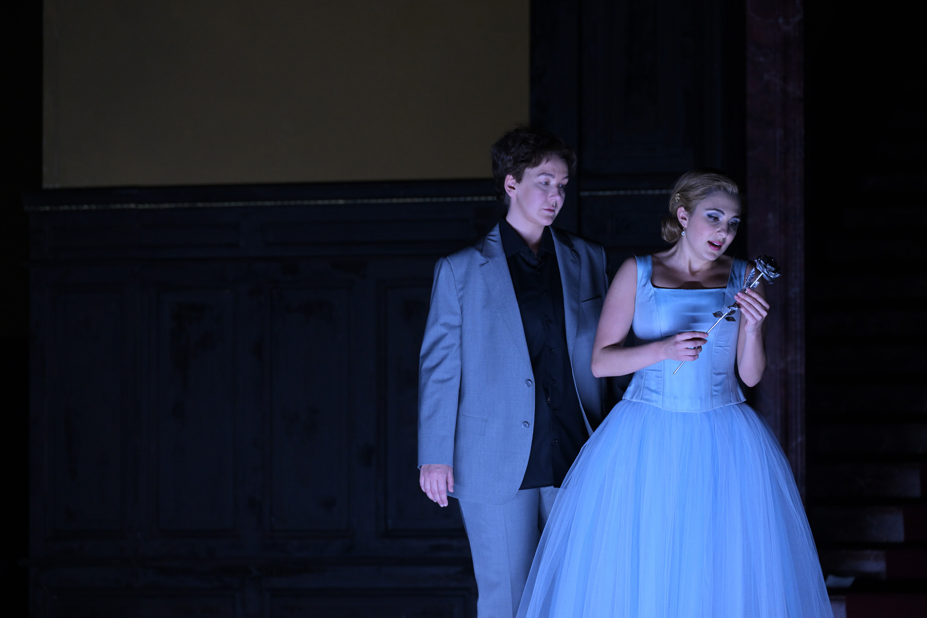 Der neugeadelte Faninal verabschiedet sich von seiner Tochter, damit sie – wie es Brauch ist – den Rosenkavalier allein empfangen kann. Aufgeregt beobachtet die Leitmetzerin seine Ankunft. Die feierliche Zeremonie der Rosenüberreichung wird für Sophie und Octavian zum Beginn ihrer Liebe. Als ihr dann ihr zukünftiger Ehemann vorgestellt wird, ist Sophie entsetzt über dessen plumpe Manieren. Wütend beobachtet Octavian, wie unverfroren Ochs auf Lerchenau gegenüber Sophie seine zukünftigen Rechte als Ehemann geltend macht. Während der Baron im Nebenzimmer den Ehevertrag unterzeichnet, gestehen sich Sophie und Octavian ihre Liebe. Sie werden vom Intrigantenpaar Annina und Valzacchi belauscht, die sofort Lärm schlagen und den Baron herbeiholen. Ochs nimmt den Zwischenfall nicht weiter tragisch. Als er Sophie jedoch gewaltsam ins Nebenzimmer zur Unterzeichnung des Ehevertrages bringen will, verwundet Octavian ihn leicht. Ein wildes Durcheinander entsteht. Der Baron, über die Ungefährlichkeit seiner Wunde erleichtert, fühlt sich bald wieder behaglich, vollends dann, als Annina ihm ein Briefchen von dem »bewussten Mariandel« überreicht. Octavian ist auf diese List verfallen. Er hat sich der Dienste Anninas versichert und durch sie dem Baron das Briefchen mit der Auffor derung zum Stelldichein zuspielen lassen.