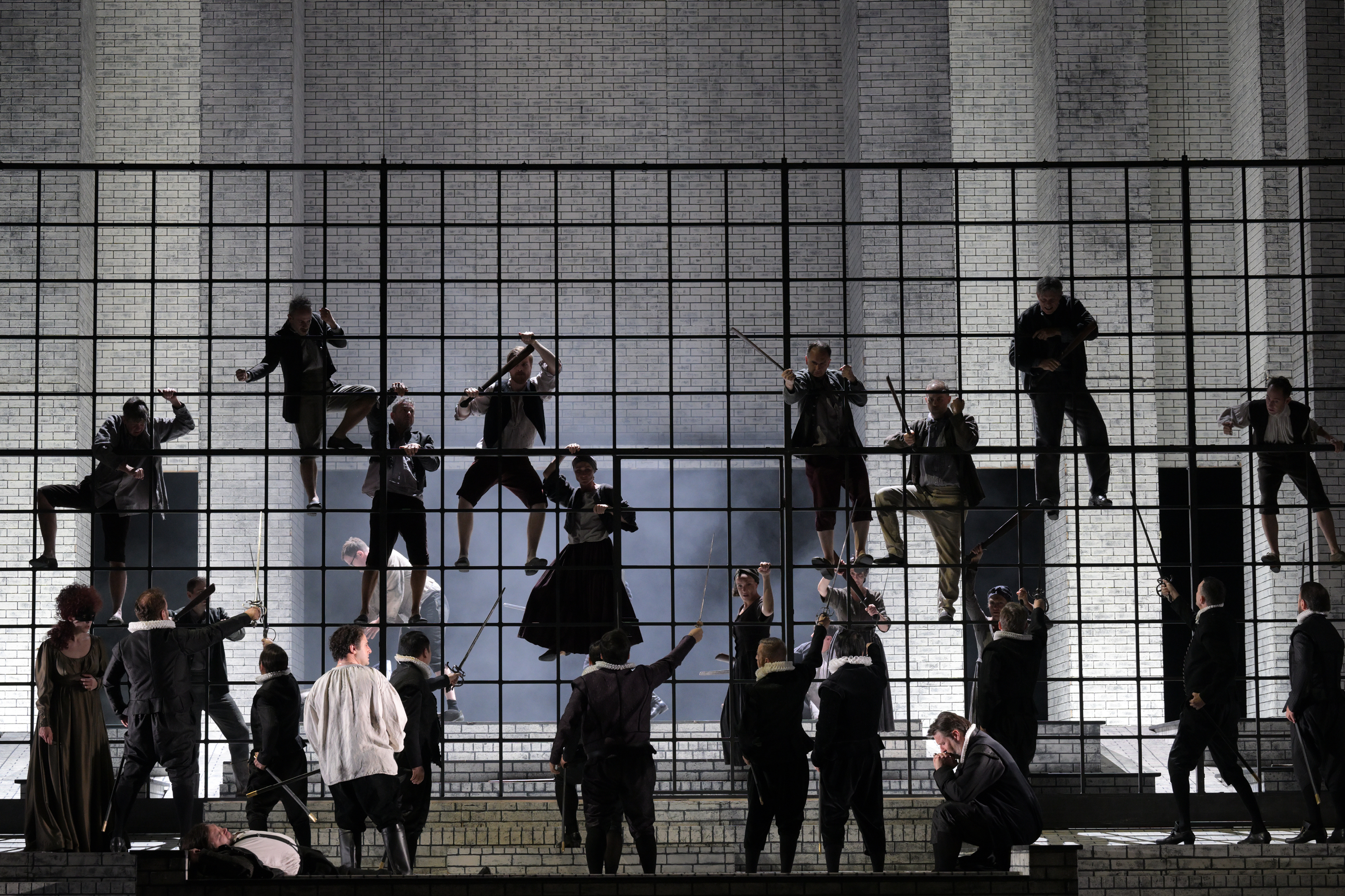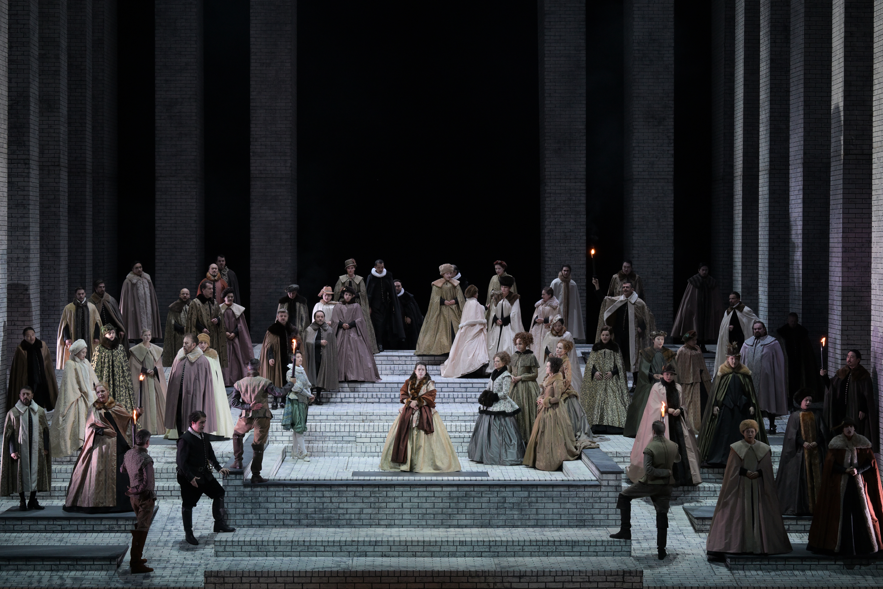 In stimmungsvollen Bildern setzte David McVicar Verdis Don Carlo in der fünfaktigen Fassung an der Oper Frankfurt in Szene. Die historischen Kostüme spiegeln den eingeschränkten Bewegungsradius der Figuren, ihr Korsett aus Etikette und Pflichtbewusstsein, den Kern ihrer Konflikte.