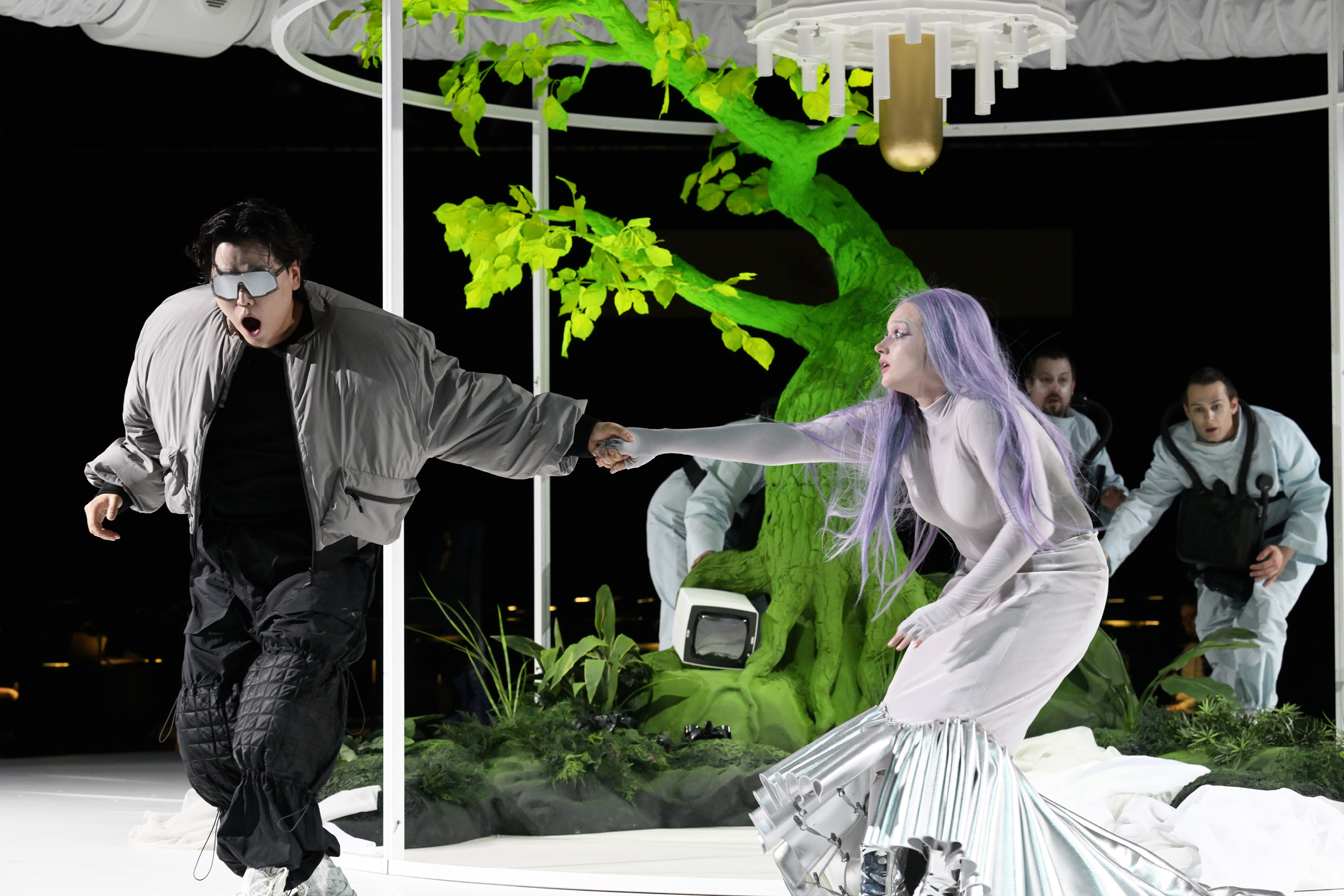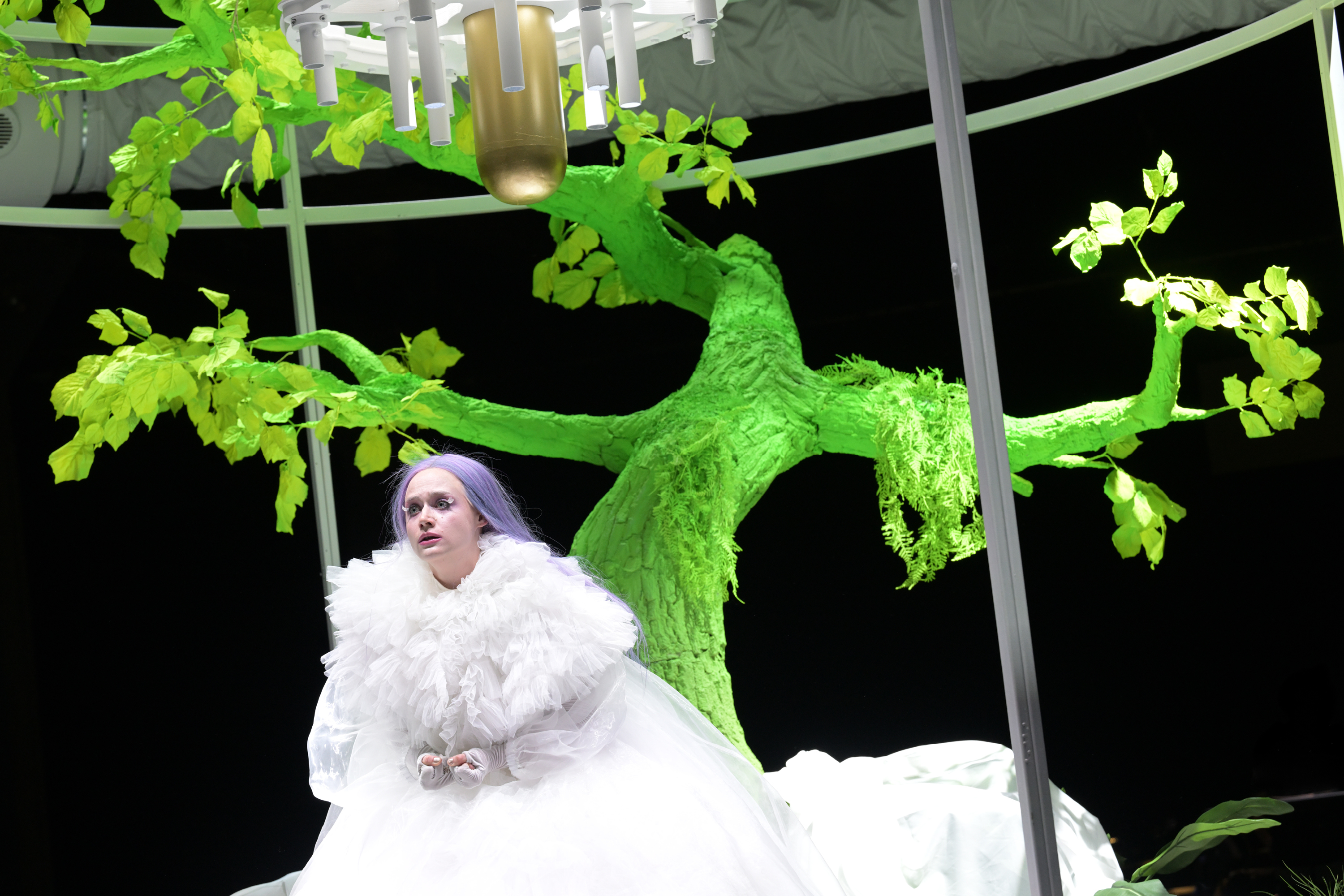 In Reimanns Oper folgen wir Melusine, die stellvertretend für eine idealistische, lösungsorientierte Gesellschaft steht, bei einem Coming of Age-Prozess. An dessen Ende wartet die Erkenntnis, dass man alleine sowieso nichts ändern können wird. Die Begegnung mit dem Grafen und seinem Schloss nimmt den Druck aus ihrer Sinnsuche. Hier darf Melusine sein, wer sie ist. In dieser Erleichterung aufgehend, kann sie der eigenen Vergänglichkeit eine lebendige Schönheit abgewinnen. Doch sie wird dafür bestraft …«