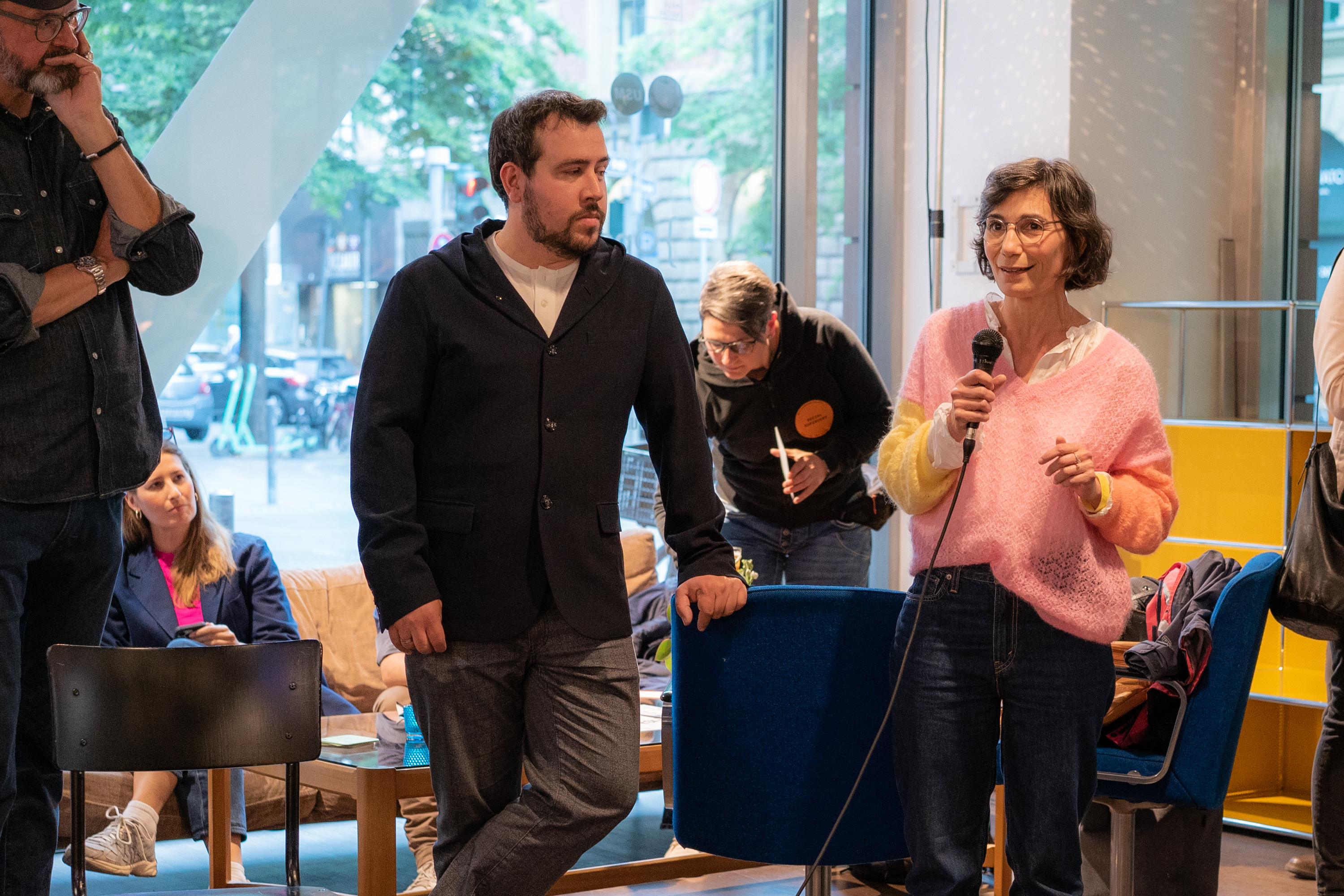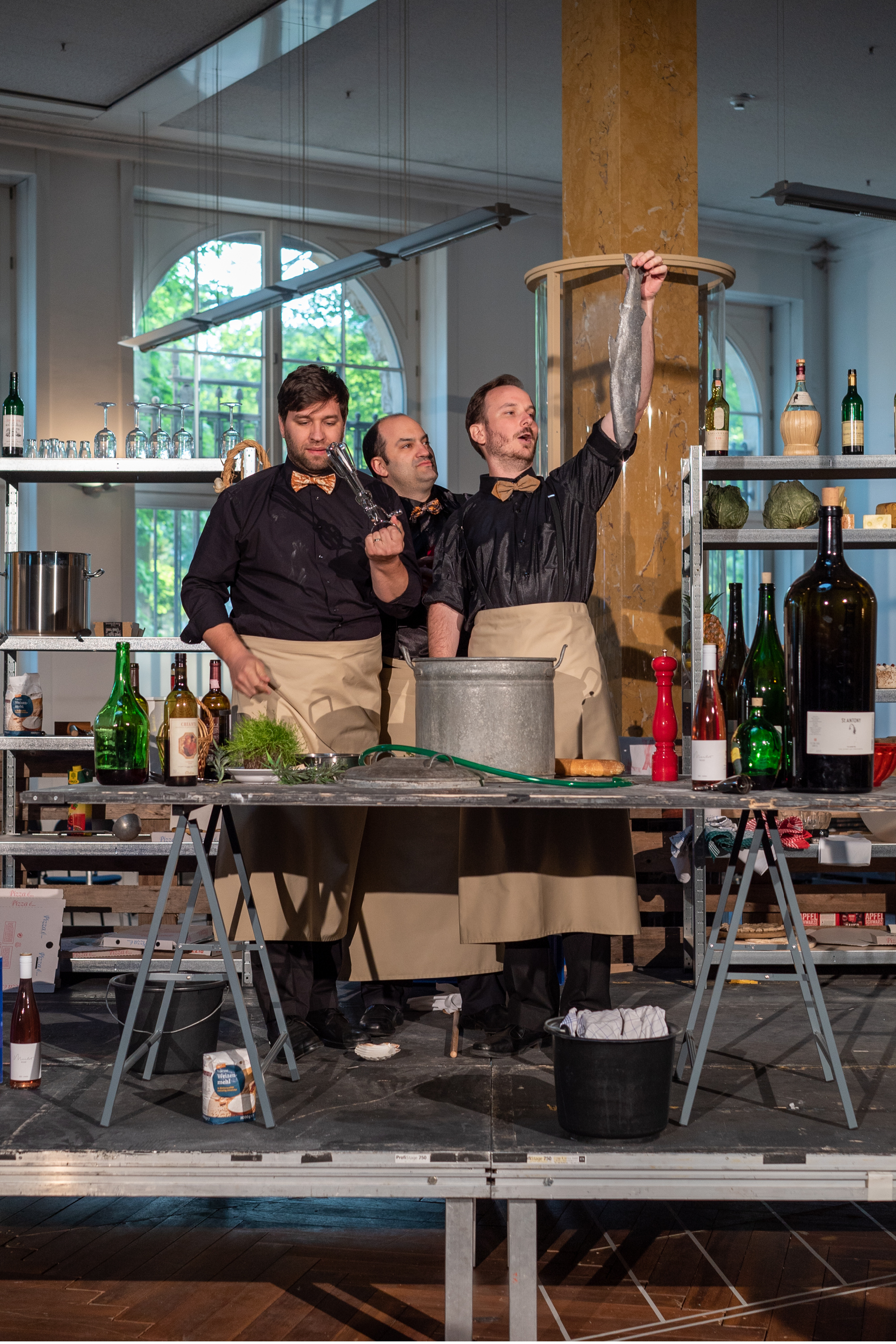 Den Kolleg*innen aus der FRANKFURTER NEUE KÜCHE nebenan konnten wir mit zwei großen Brettern aus dem Malsaal helfen, die auf Module von USM Haller befestigt wurden und als große Tische im Gastro-Pub zum Feierabendgetränk einladen. Wir verschrauben uns also auch sprichwörtlich mit unseren Kooperationspartnern. Erfrischend, dass nun bei uns wie auch »bei den Jungs von nebenan« Veranstaltungen ohne Dresscode stattfinden. Ganz gleich ob OPER TO GO, INTERMEZZO, zum Feierabend-Bier nebenan oder mittwochs zum Afterwork-Tänzchen in der FRANKFURTER NEUE KÜCHE geht es ungezwungen zu.