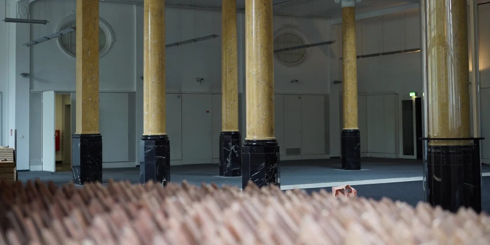 Im vergangenen November lag in der ehemaligen Schalterhalle einer großen Bank noch ein grauer Teppichboden und schon bei der ersten Begehung war klar: Hier kann etwas Besonderes entstehen, auch wenn die Umgestaltung sicherlich herausfordernd wird. Denn die hohe Decke über dem fantastisch riesigen Lüster schluckt viel Klang. Auch die alte Auslegeware war nicht optimal.