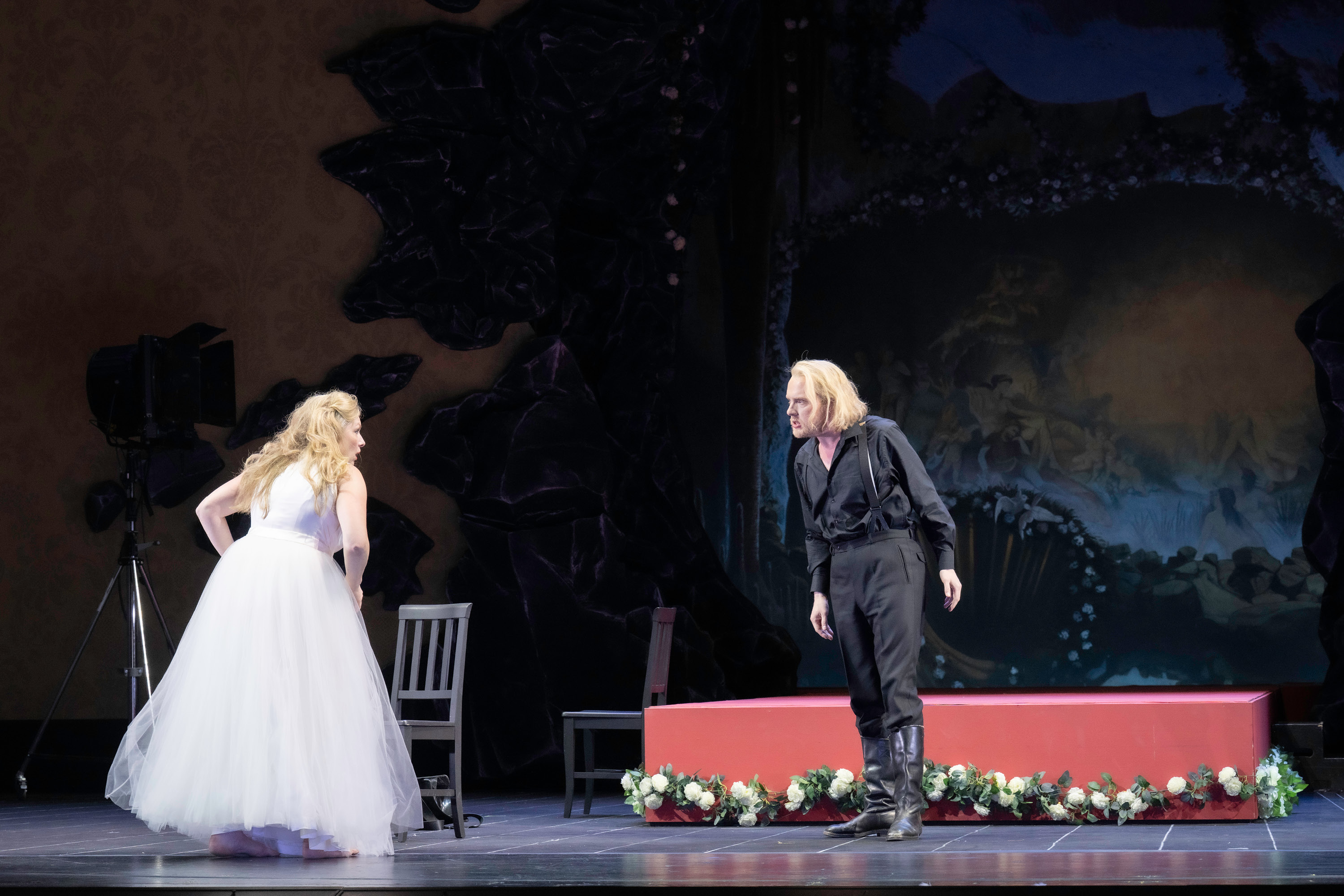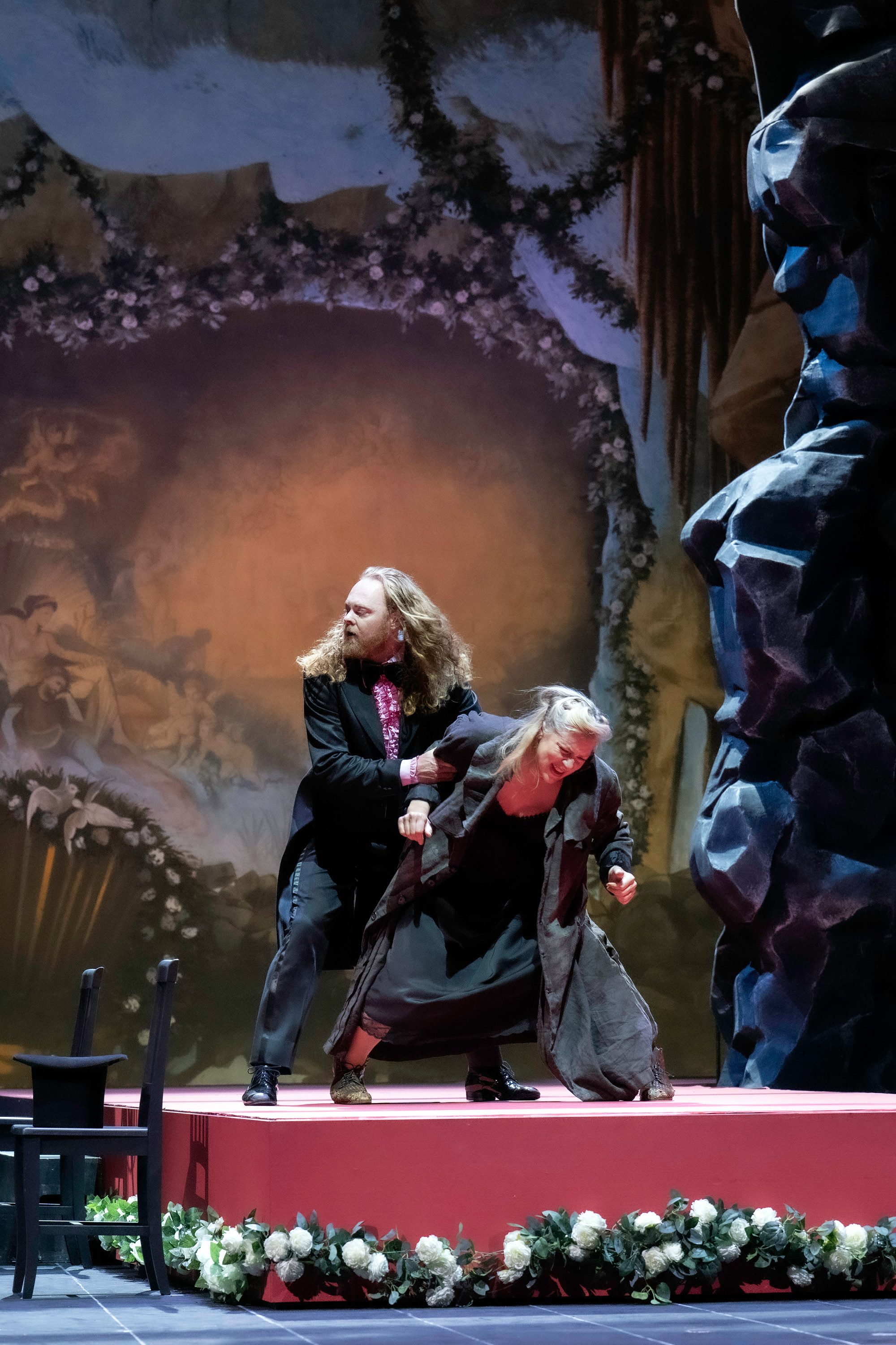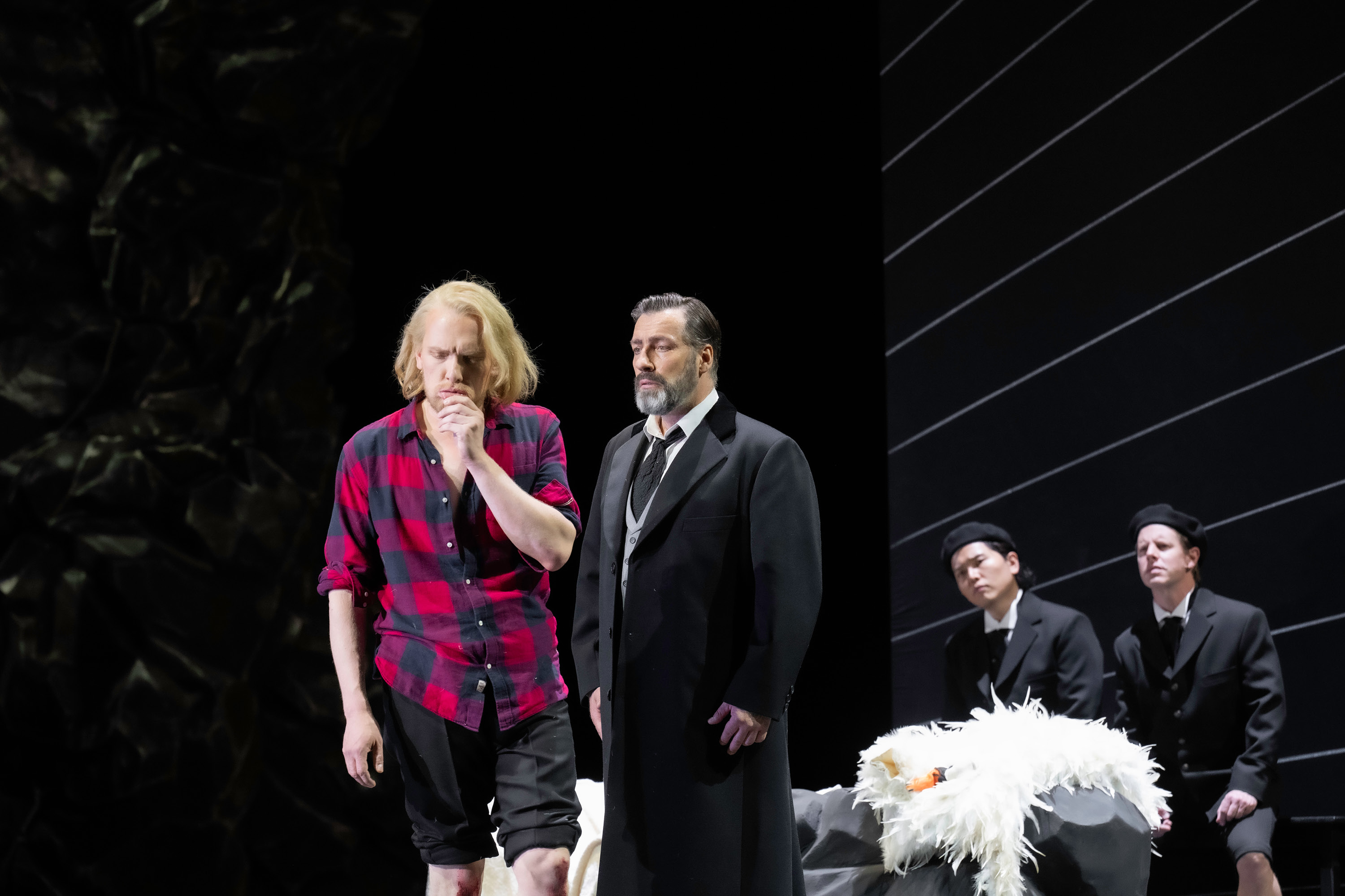 König Amfortas, Hüter des Grals, hat den heiligen Speer an Klingsor, Widersacher der Gralsritter, verloren. Dabei hat er eine Wunde empfangen, die sich nicht schließen will. Kundry, ein geheimnisvolles Doppelwesen, dient den Rittern; sie beschafft Medizin gegen Amfortas’ Schmerzen, die jedoch wenig ausrichten kann. Während der König hofft, sich beim morgendlichen Bad im See Linderung zu verschaffen, berichtet der alte Gurnemanz den Knappen, wie es zum Verlust des Speers kam und warnt sie vor den Verlockungen in Klingsors Zaubergarten. Da taucht Parsifal auf. Der junge Draufgänger hat das Sakrileg begangen, im heiligen Bezirk einen Schwan zu schießen. Gurnemanz weist ihn zurecht. Auf seine Fragen weiß der Fremde jedoch keine Antwort. Kundry berichtet ihm, dass seine Mutter, die ihn im Wald aufzog, starb, nachdem er sie verließ, um Rittern zu folgen, deren Erscheinung ihn beeindruckt hatte. Parsifal ist tief verstört. Da kommt Gurnemanz ein Gedanke: Ist der ahnungslose Naturbursche vielleicht der »reine Tor«, der der Gemeinschaft Erlösung bringen könnte? Dazu müsste er »durch Mitleid wissend« sein; so wurde es Amfortas verheißen. Gurnemanz nimmt Parsifal mit in die Gralsburg, damit er das Ritual der Gralsenthüllung verfolgt. Die Wunde, die ihm Klingsor mit dem heiligen Speer zugefügt hat, aber auch die Schuld, die er auf sich geladen hat, bereiten Amfortas Höllenqualen. Solange er regelmäßig seines Amtes waltet und den Gral enthüllt, kann er jedoch nicht sterben. Erbarmungslos bedrängt der hochbetagte Titurel seinen Sohn, da nur der Anblick des Grals ihn noch am Leben hält. Parsifal beobachtet die Vorgänge verständnislos. Da er nichts zu begreifen scheint, jagt Gurnemanz ihn fort.