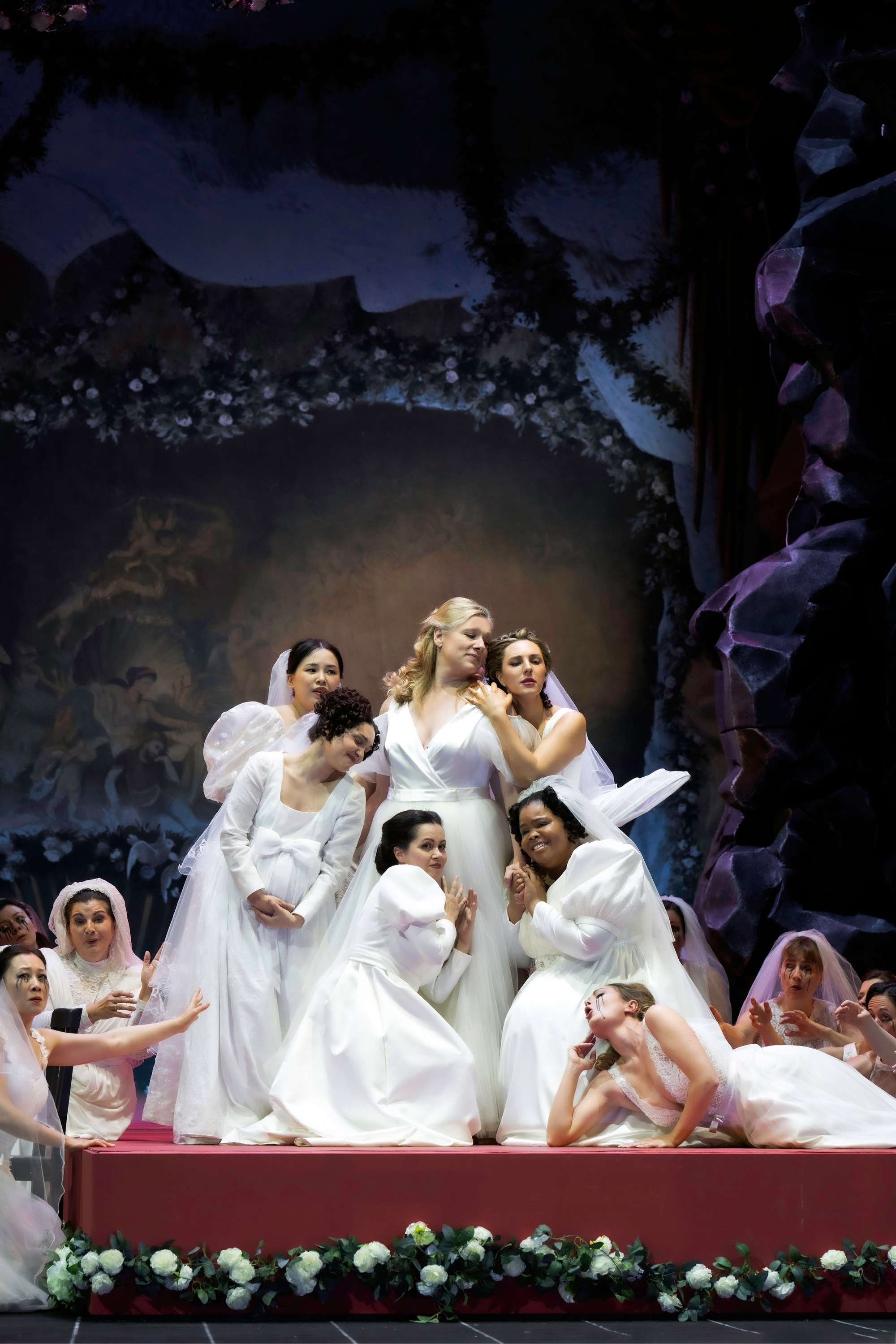 Julia Stuart als Schatten eines jungen Mädchens in Magnards Guercœur sowie als Blumenmädchen in Wagners Parsifal.