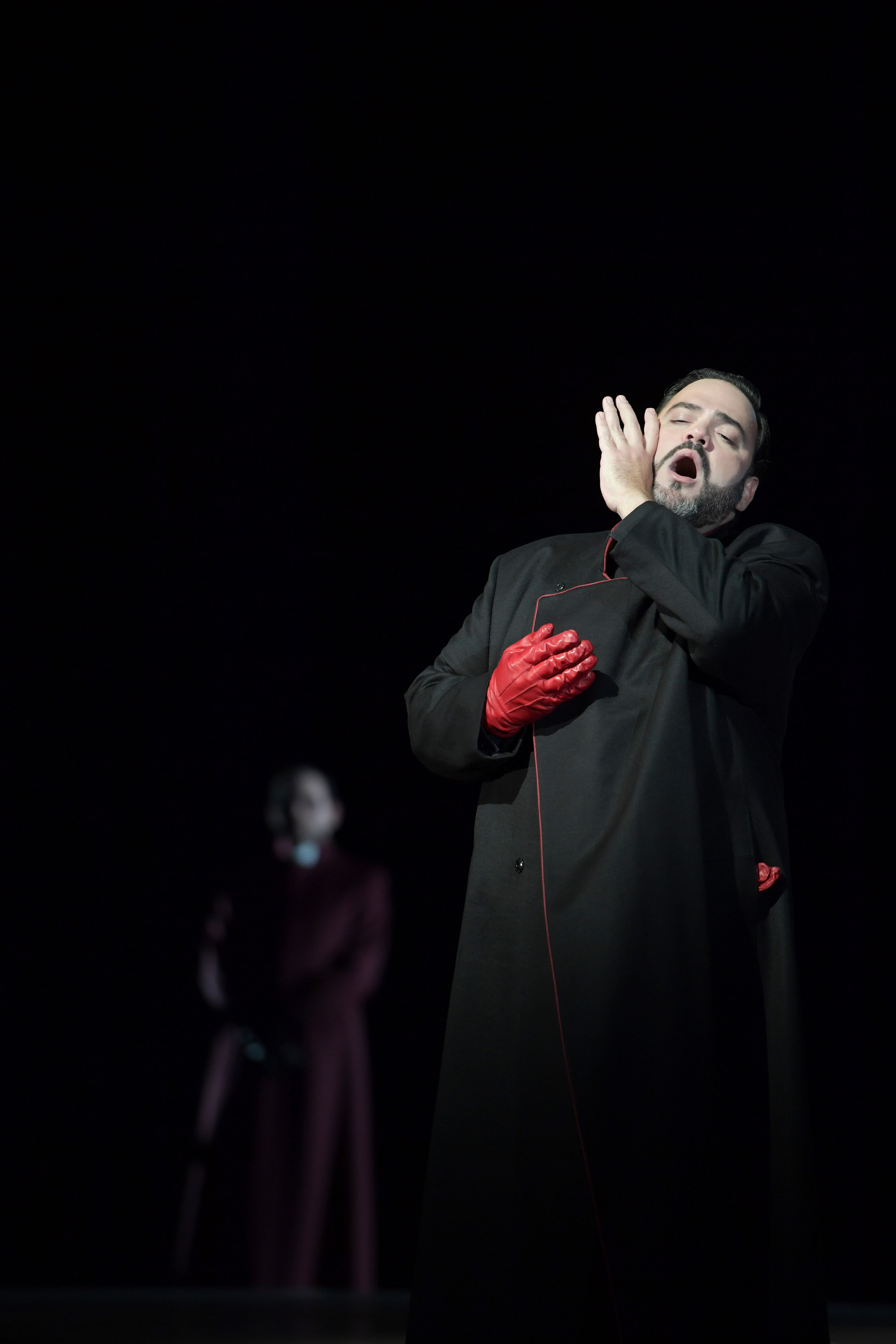 Scarpia bestellt Tosca zu sich ein. Der Polizeispitzel Spoletta berichtet von der vergeblichen Suche nach Angelotti. Nur Cavaradossi wurde verhaftet und wird zum Verhör hereingebracht, doch er verrät nichts. Durchs Fenster klingt die Festkantate mit Tosca als Solistin herauf. Scarpia befi ehlt, Cavaradossi zu foltern. Als der Maler gerade abgeführt wird, tritt Tosca in den Raum; Cavaradossi schärft ihr ein, nichts zu sagen.